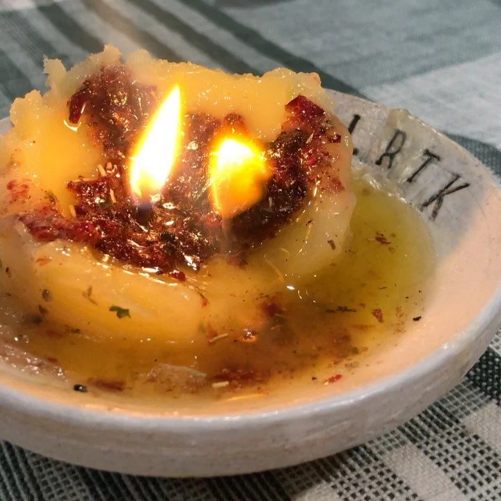 Light both of the food-safe wicks and allow ~20-30 minutes to burn. Enjoy some appetizers and a riveting conversation while the candle melts into a dipping sauce.
